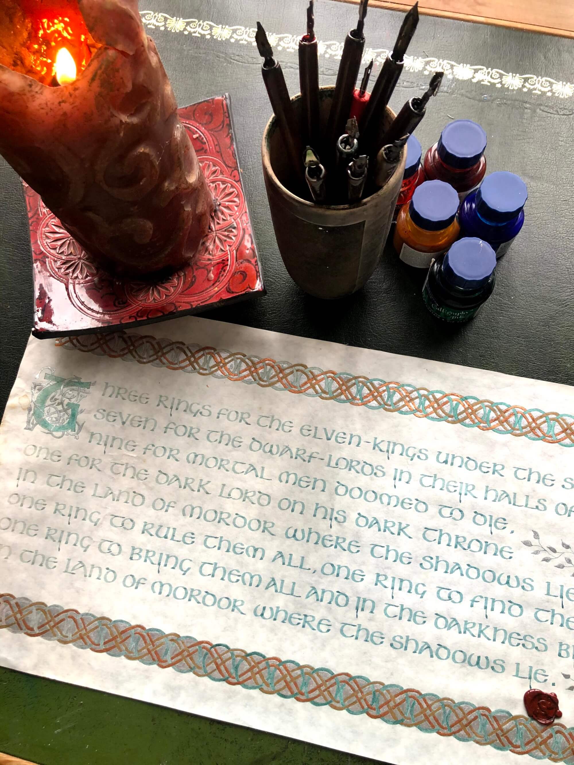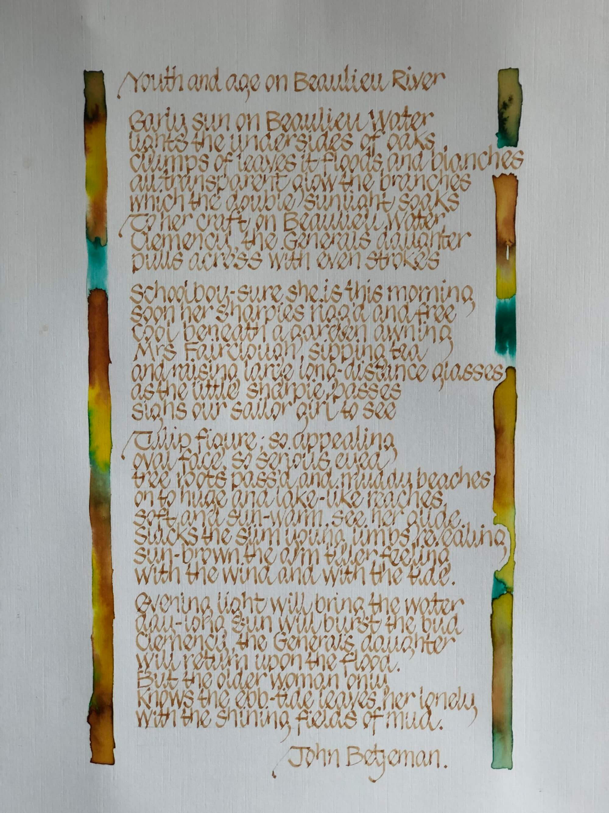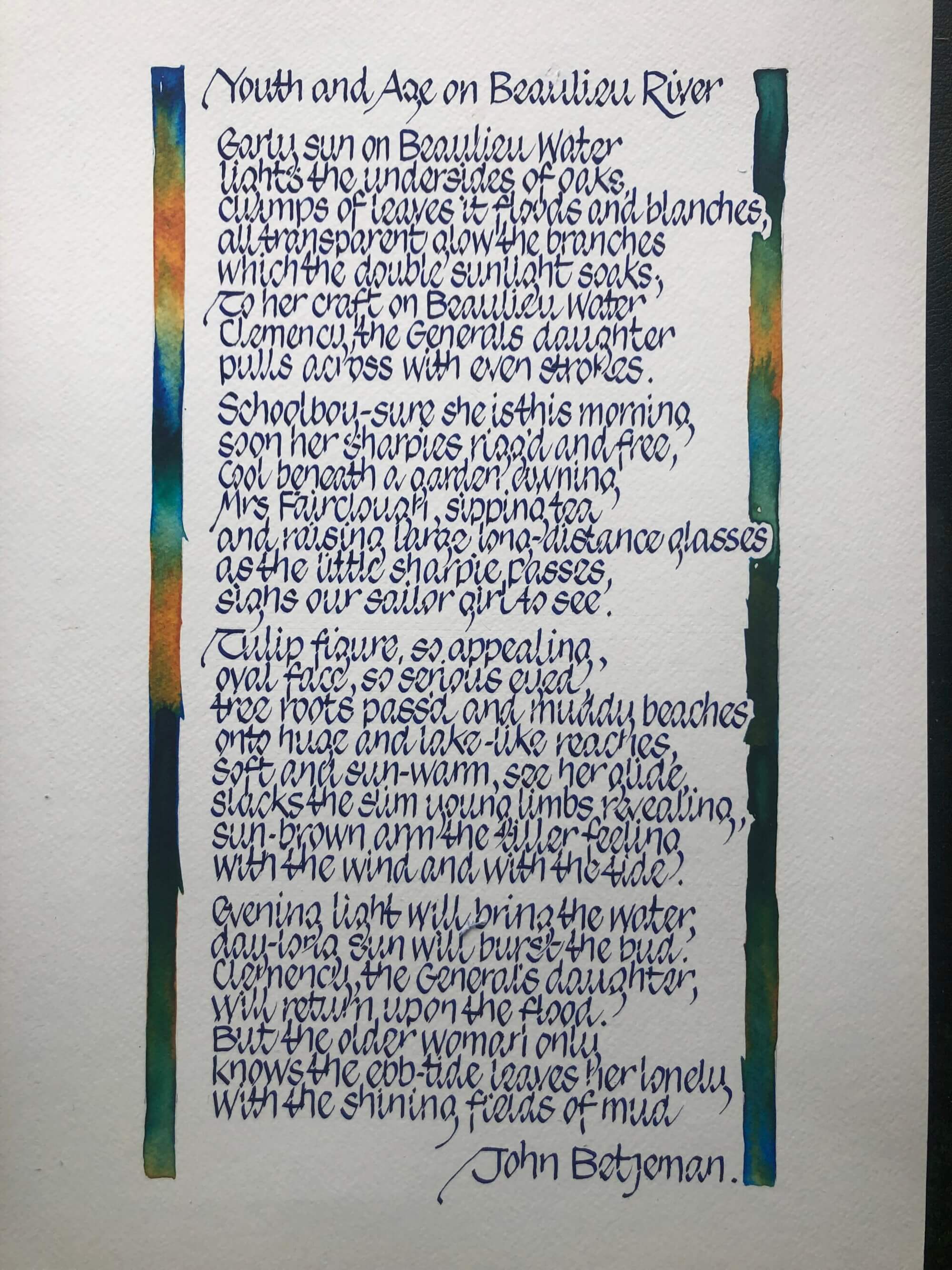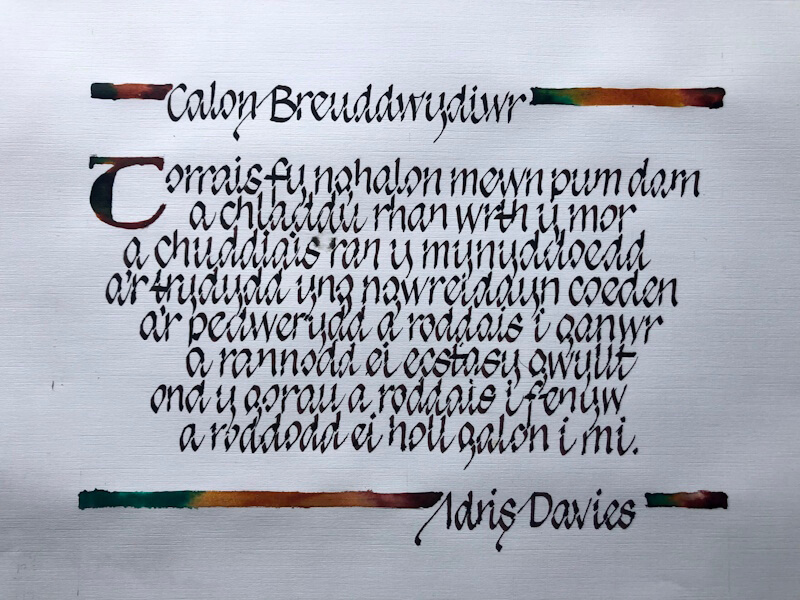 The use of an illuminated letter is always associated with medieval manuscripts but their use can seem misplaced in contemporary calligraphy. I have a couple of my own designs in this section.